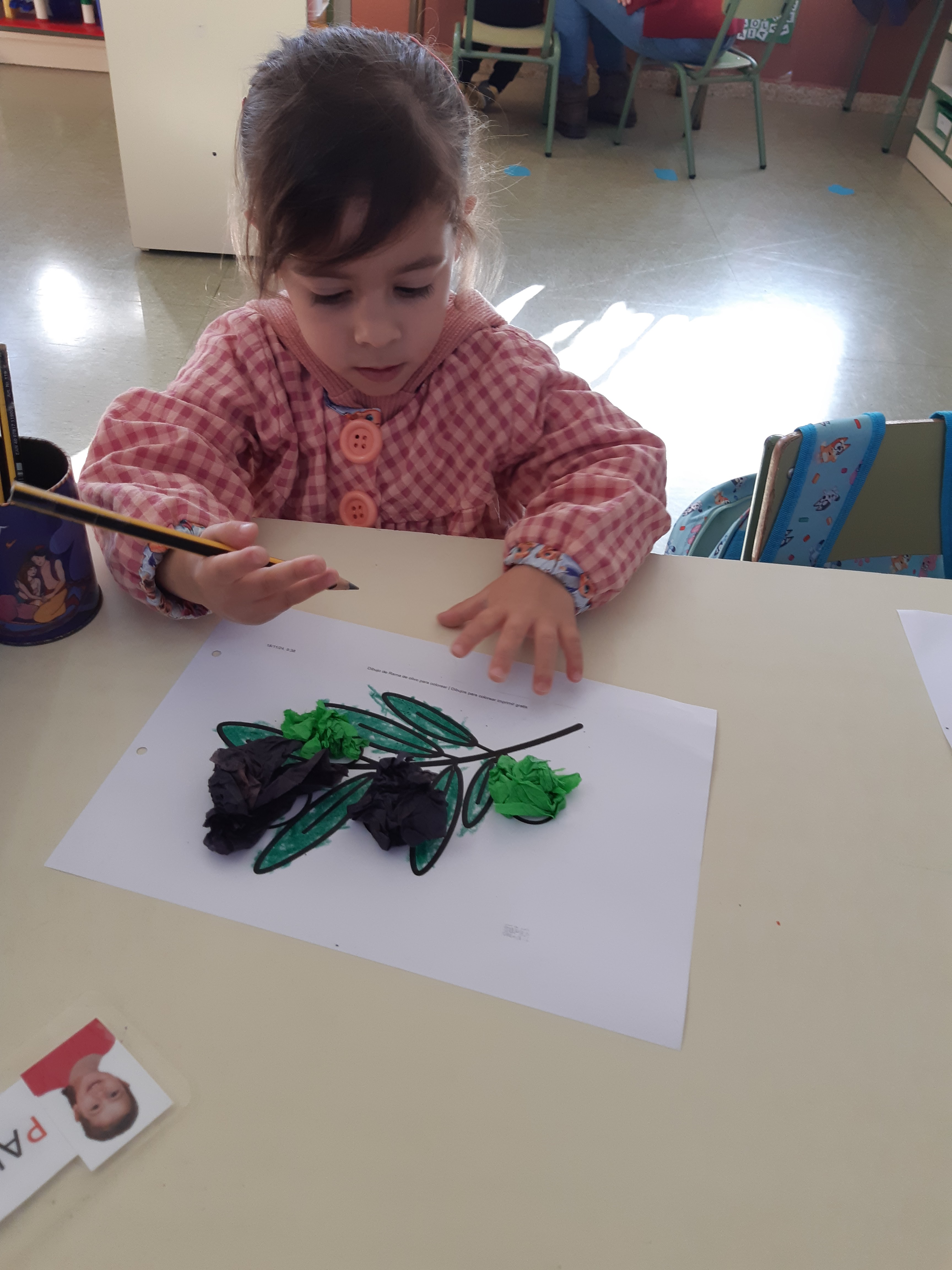 El otoño llegó y la plaza de hojas se llenó. El grupo de infantil a desayunar bajó y hojas recogió.